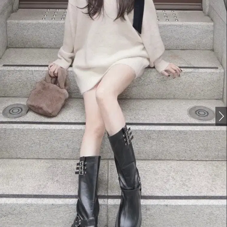 GRL 원숄더 벨로아 리본 니트 미니 원피스[dr796]