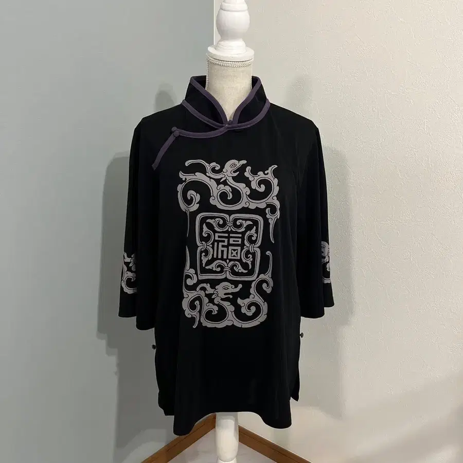 태극권 셔츠, 블랙 자수 중화권 스타일 7부 소매 상의