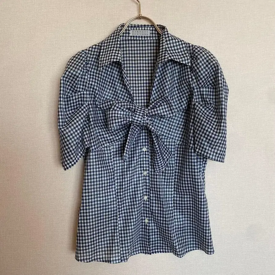 바니스 뉴욕 반팔 네이비 화이트 체크 무늬 [ S ] 리본 귀여움