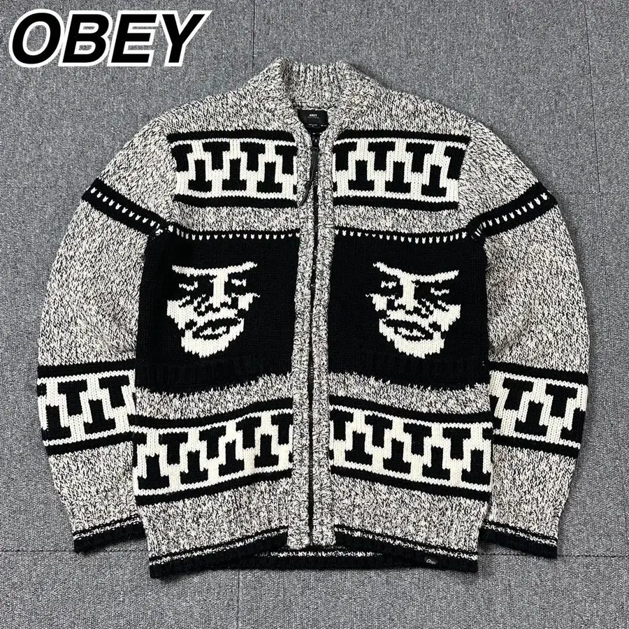 OBEY 니트 가디건 페이스 디자인 코위찬 니트 오베이