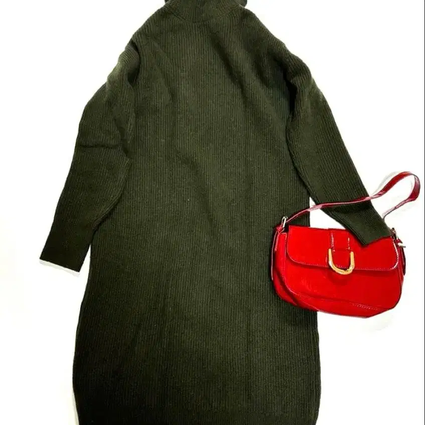 [맥피] 투모로우랜드 카키 터틀넥 니트 원피스 울 M