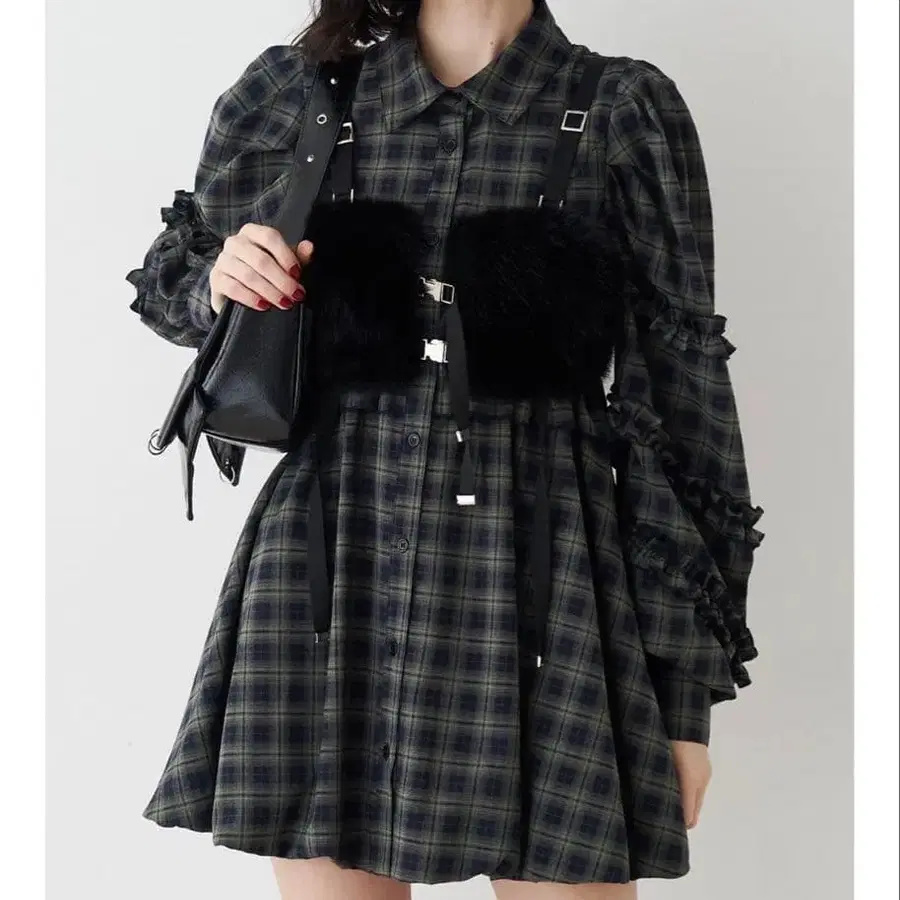 jouetie 프릴 숄더 벌룬 미니 원피스