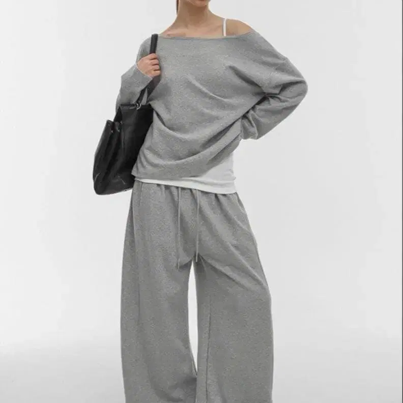 BLACKUP 그레이 와이드 팬츠 드로우 스트링 맨투맨