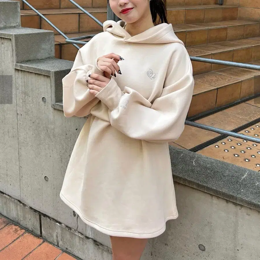 허리를 조이지 않고 입으면 A라인 실루엣으로 귀엽게, 허리를 조이면 셋업 스타일의 실루엣으로도 연출 가능합니다!