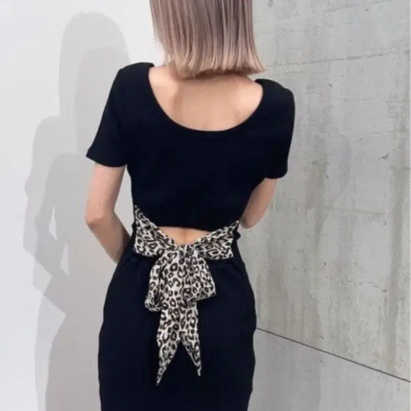 리본 포함 블랙 반팔 니트 원피스 GYDA
