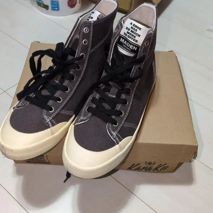 미사용 새상품 KARAKU 네이비 나염 스니커즈 하이컷 25cm