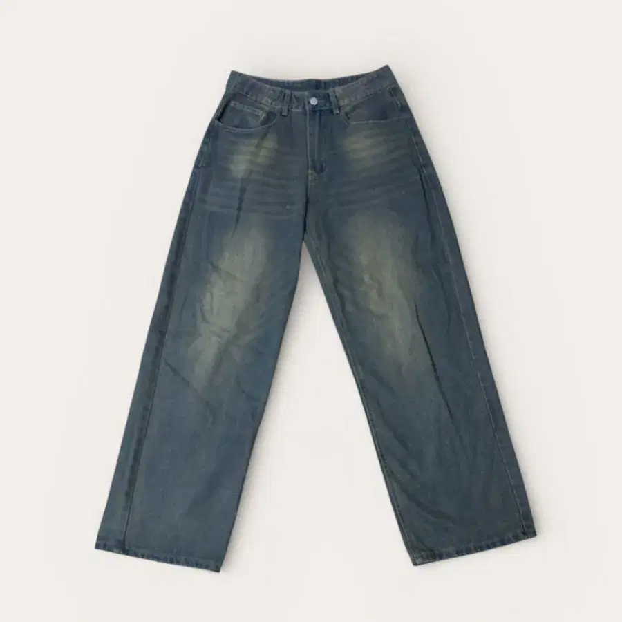 다크 블루 와이드 레그 데님 페이드 가공 빈티지 스타일