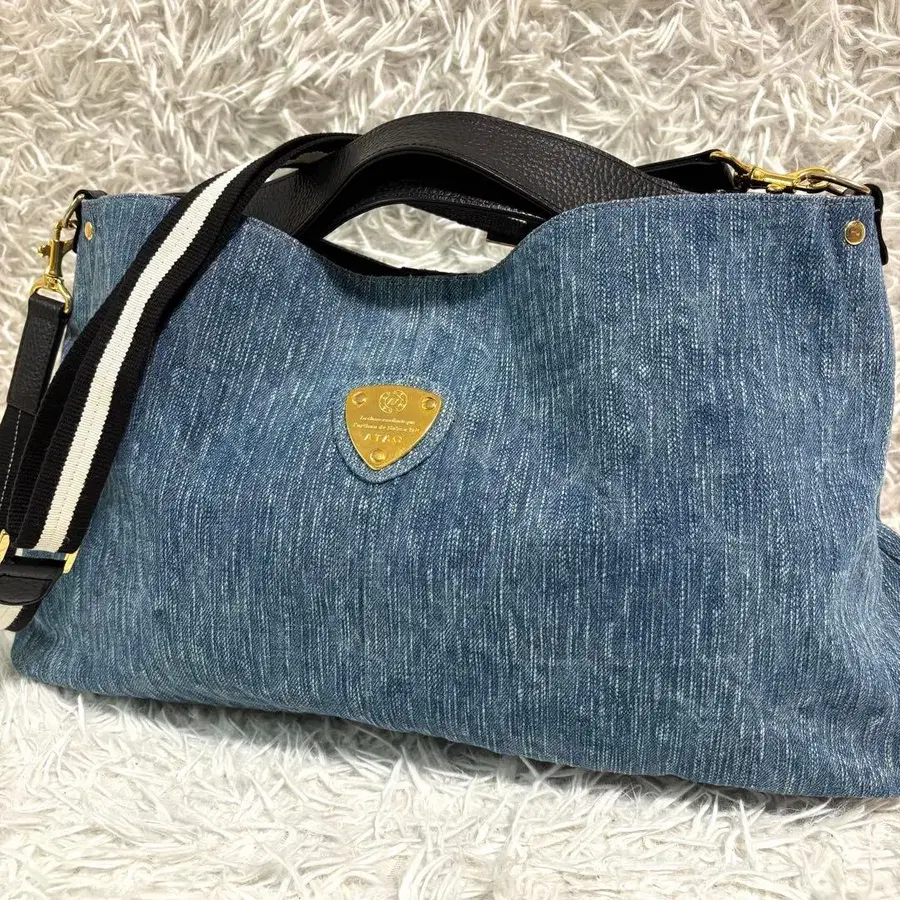 엘르 2way 숄더 사선 숄더 데님 절개 이소재 도킹 골드 금장 장식 스트라이프