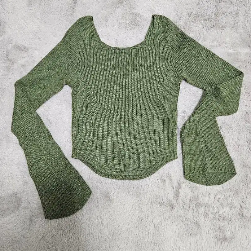 유니클로 올리브 그린 스퀘어넥 긴팔 상의