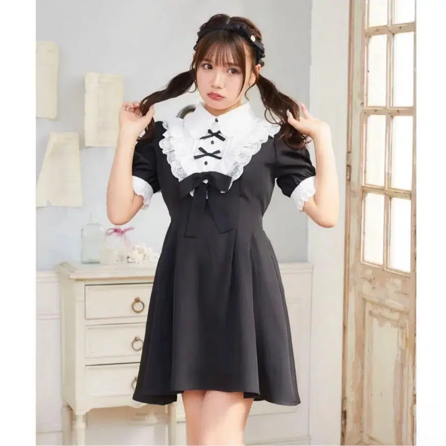 [ ROJITA ] 요크 프릴 리본 디자인 원피스 (블랙)