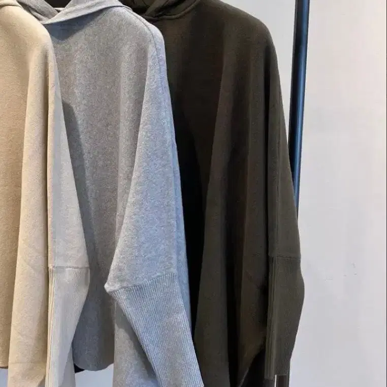CYNICAL 면폴리 자카드 편직 후디 판초 니트 카키