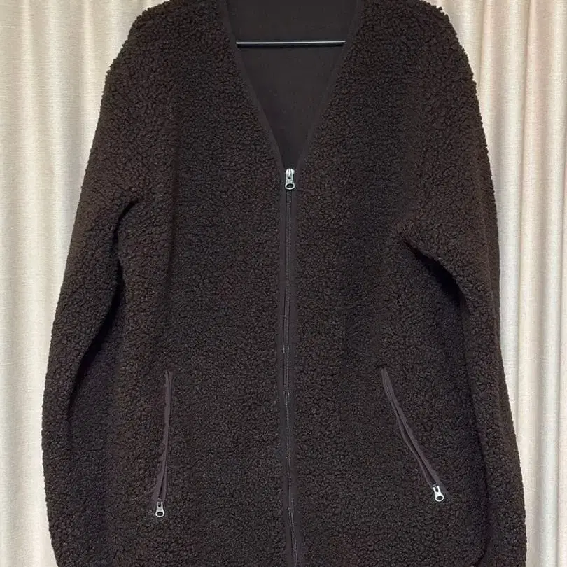 유니클로 브라운 플리스 자켓 사이드 포켓 포함