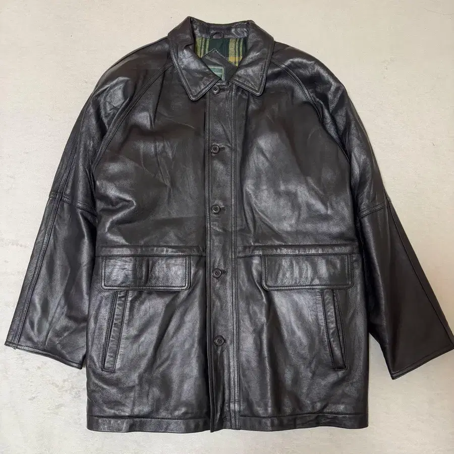 미 에이징 90s 블랙 리얼 가죽 카 코트 L 사이즈 램 가죽
