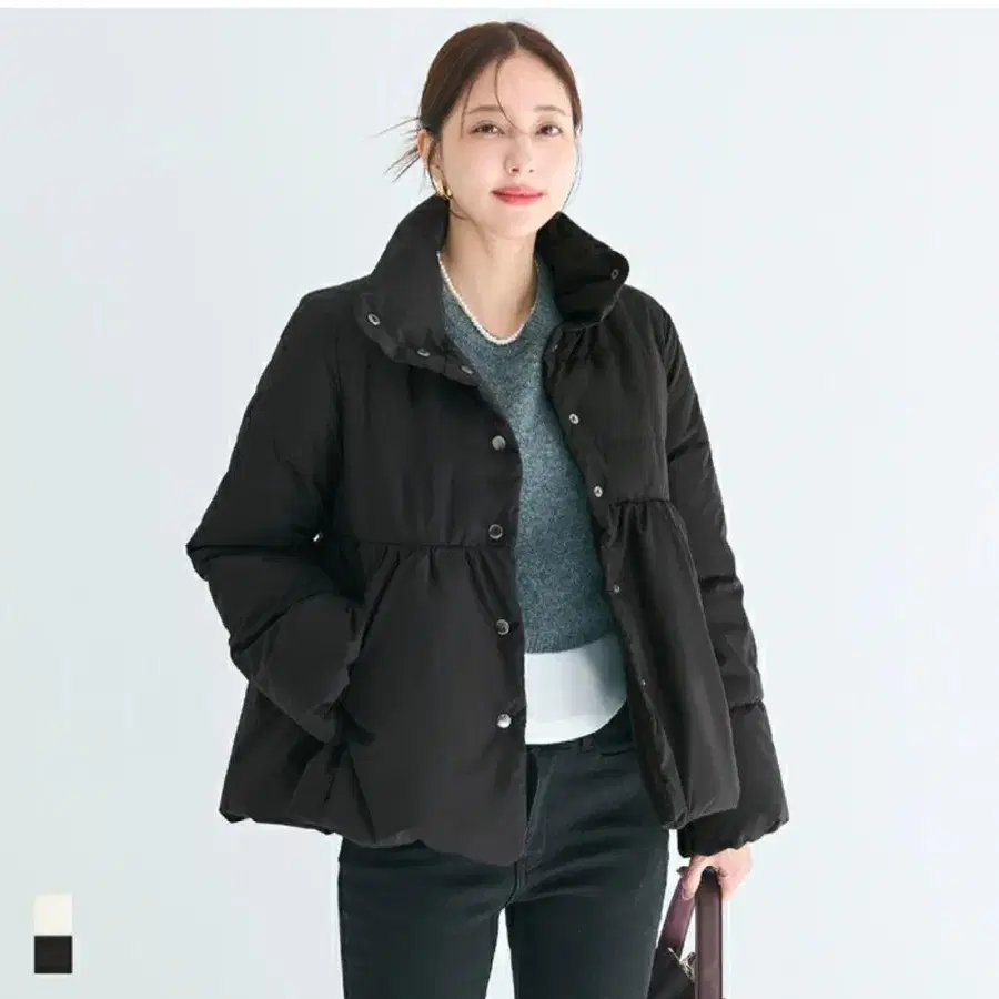 충전솜 스탠드 카라 플레어 블루종 블랙 다운 자켓 스탠드 카라 블랙