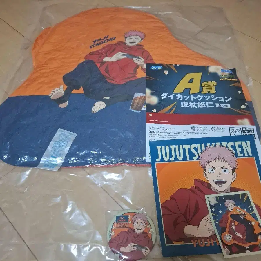 주술회전 세가 럭키 쿠지 이타도리 유우지 캔뱃지 쿠션 스티커