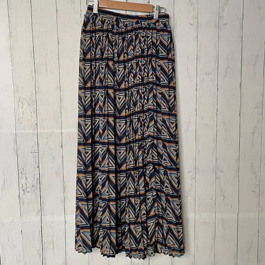 ZAMPA 기하학 패턴 플리츠 맥시 스커트 M 사이즈 허리밴딩