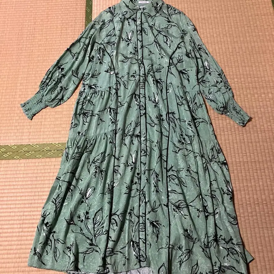JEANASIS 꽃무늬 그린 A라인 원피스