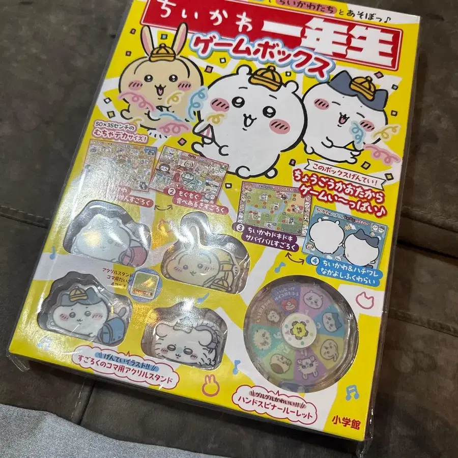 새상품 미개봉, 부록 완비입니다! 치이카와(먼작귀) 1학년 게임 박스 소학관의 학습 잡지 [소학 1학년]에서 치이카와(먼작귀) 도서가 등장! 4종의 놀이가 들어있는 호화 세트, 가장 큰 특징은 역시 소학 1학년다운 노란색 통학모 & 란도셀 디자인의 아크릴 스탠드 4개(치이카와, 하치와레, 토끼, 모몽가)입니다. 모든 것에 프리가나(후리가나)가 붙어 있어, 어린 아이들도 즐겁게 놀 수 있는 내용입니다. 가족, 친구들과 모두 함께 즐길 수 있습니다! [ 세트 내용 ] ○ 주사위 놀이 3종류 (35 x 50cm) [ 대모험 주사위 놀이 ] [ 냠냠 먹거리 탐험 주사위 놀이 ] [ 두근두근 서바이벌 주사위 놀이 ] ○ 복원놀이 1종류 (35 x 50cm) [ 치이카와 & 하치와레 사이좋은 복원놀이 ] ○ 아크릴 스탠드 4개 ※ 소학 1학년다운 노란색 통학모 & 란도셀 디자인. 치이카와, 하치와레, 토끼, 모몽가 4개입니다. ○ 치이카와 핸드 스피너형 룰렛 이대로 봉투에 넣어 발송해 드립니다!