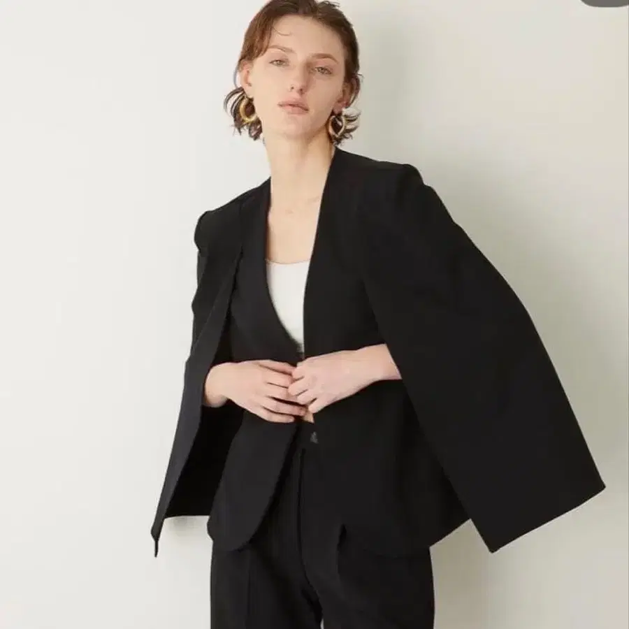 '슬리브 위치에 크게 슬릿을 넣은 판초 스타일 자켓'