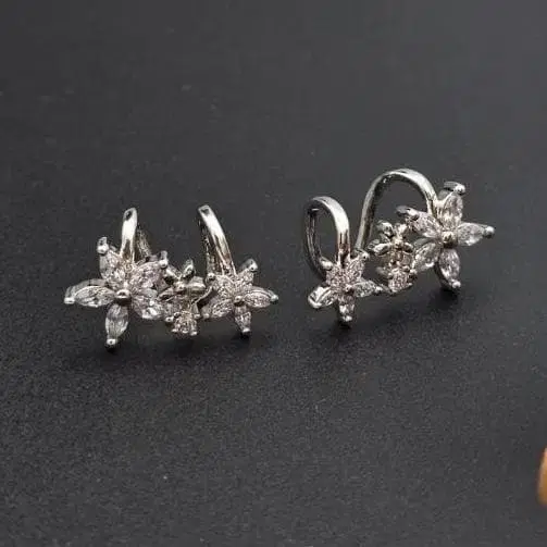 실버 컬러 플라워 이어커프 합금 비쥬 2개 세트 화려함