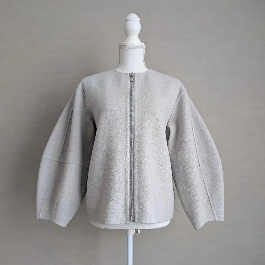 ESTNATION 백 프릴 숏 지퍼 코트 블루종 노카라