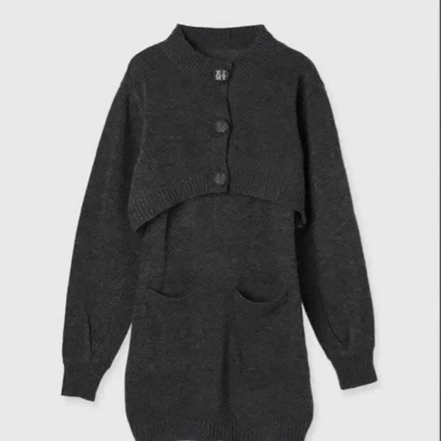 eimyistoire 에이미 로고 버튼 니트 세트 원피스 그레이