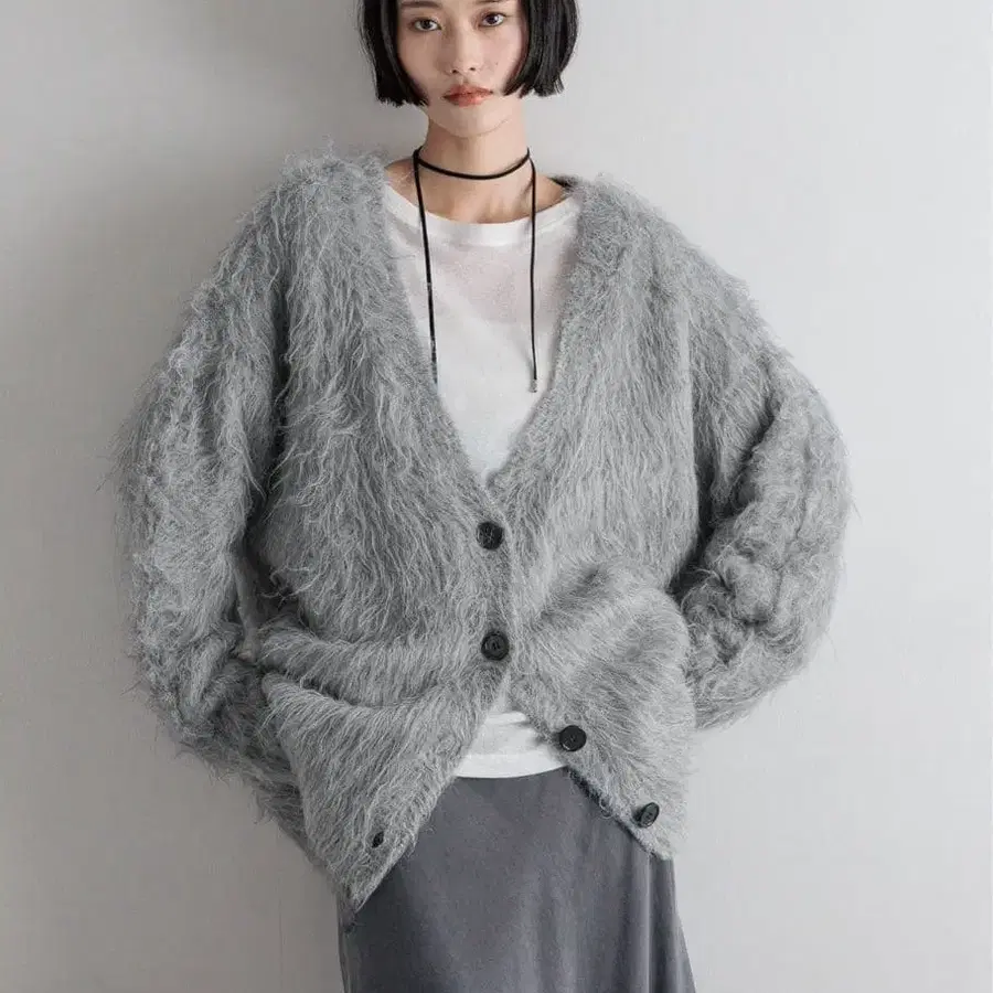 LOWRYS FARM 샤기 롱 V 가디건 그레이