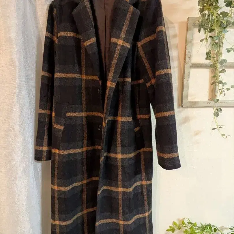 Lipstar 울 혼방 체크 무늬 롱 코트 립스타