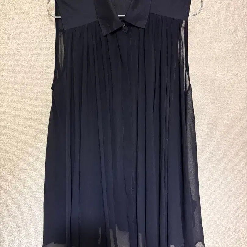 더블 스탠다드 클로징 슬리브리스 쉬폰 상의 네이비