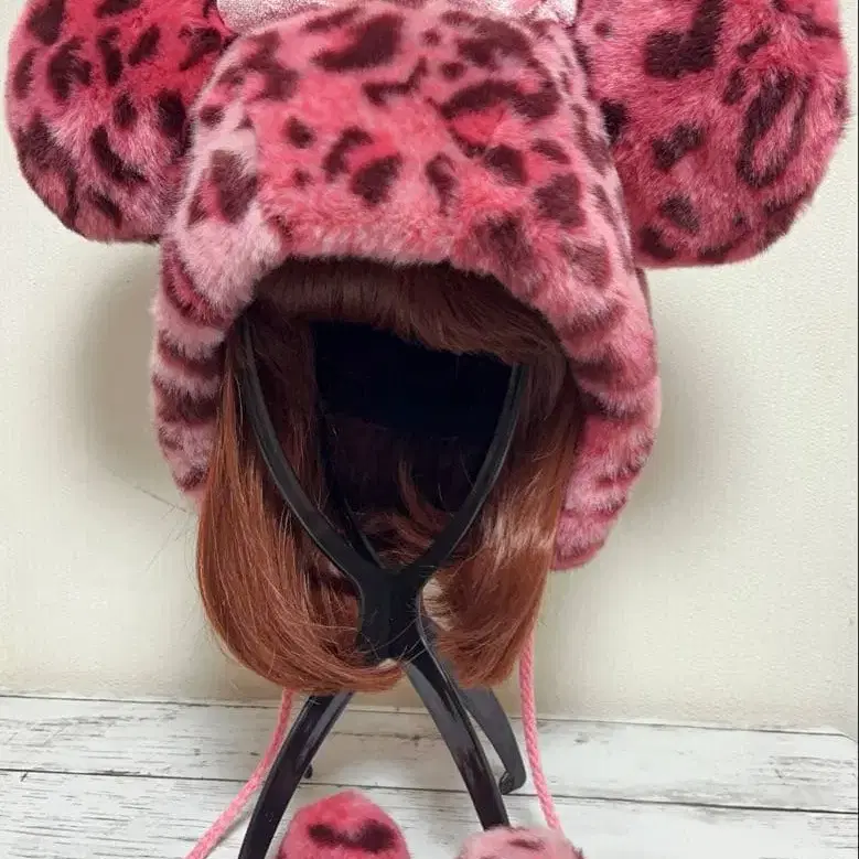 미니 /팬캡/레오파드 무늬/핑크/디즈니랜드