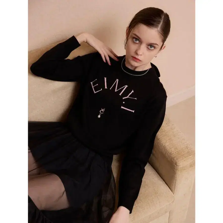 가슴 부분에 [ EIMY ] 로고 자수를 더한 심플하면서도 존재감 있는 니트 풀오버.