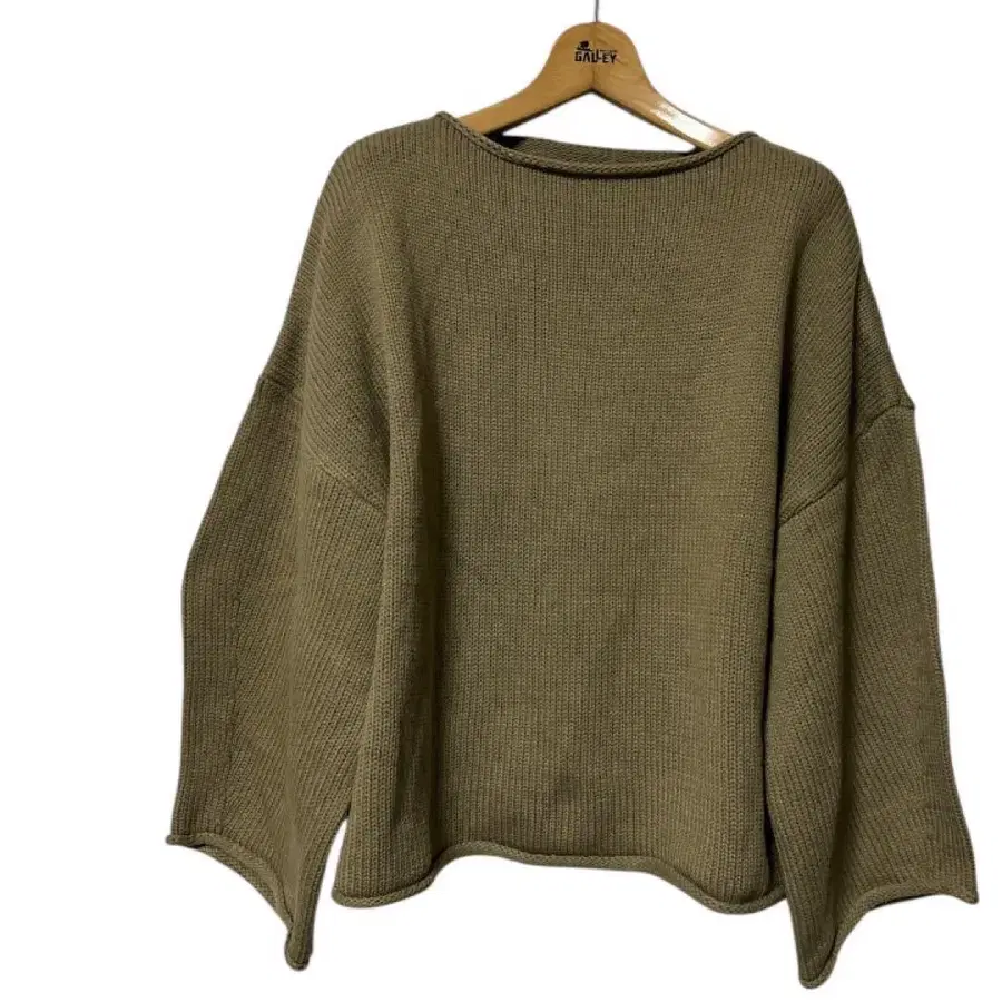 올리브색 카키 와플 편직 니트 긴팔 넓은 소매