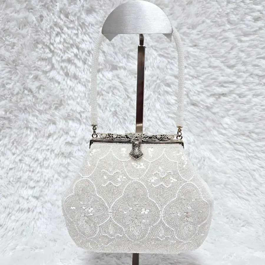 비즈 자수 파티 백 가마구치 화이트 포멀 핸드백