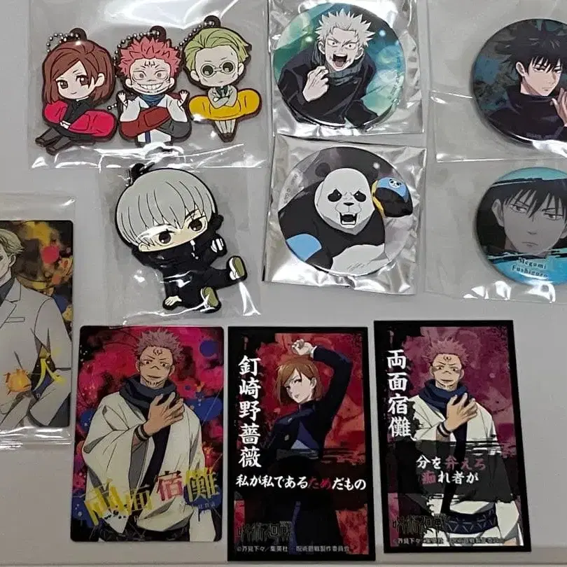 주술회전 굿즈 묶음 판매 러버 참 카드 씰 캔뱃지