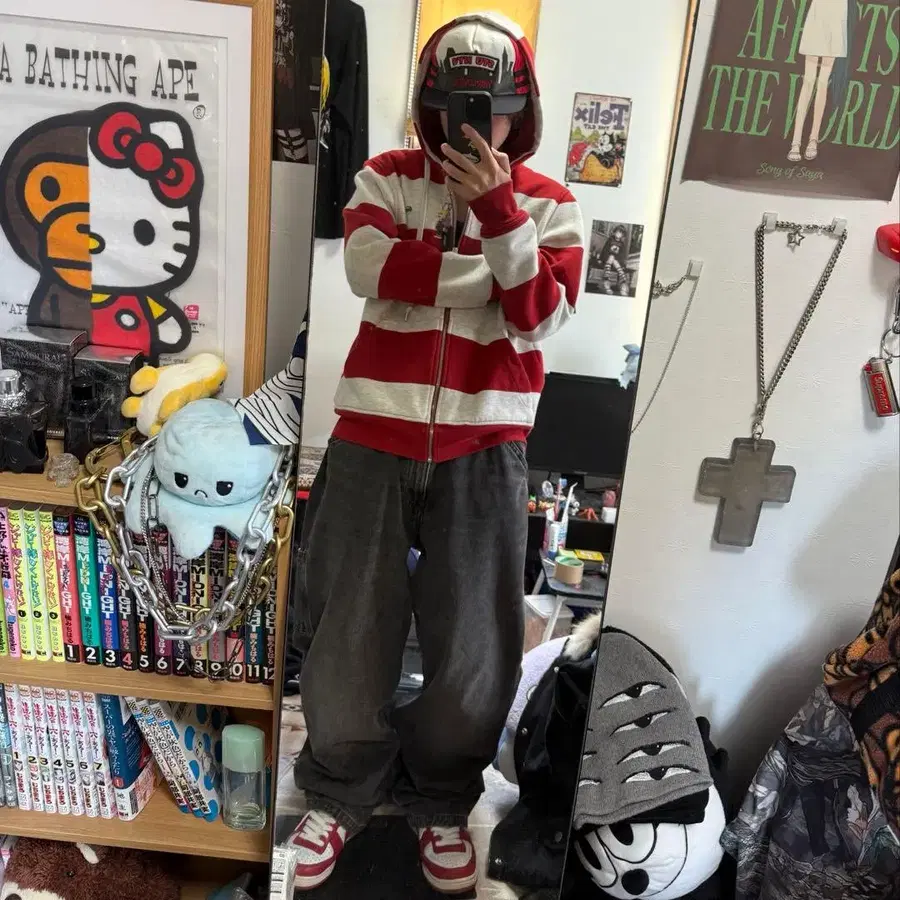 라코스테 lacoste live 보더 후드티 빨간색 화이트