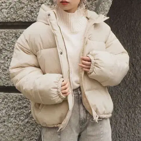 tiptop 페이크 다운 후드 블루종