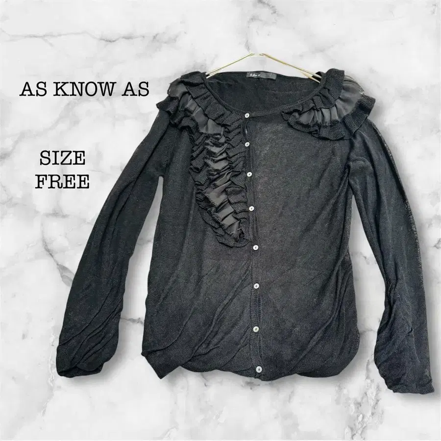 아즈노우아즈 AS KNOW AS 프릴 장식 가디건 블랙 FREE 개성있는