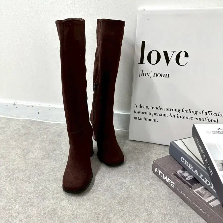 미사용 새상품 롱 부츠 스웨이드 브라운 사이드 지퍼 부착 S
