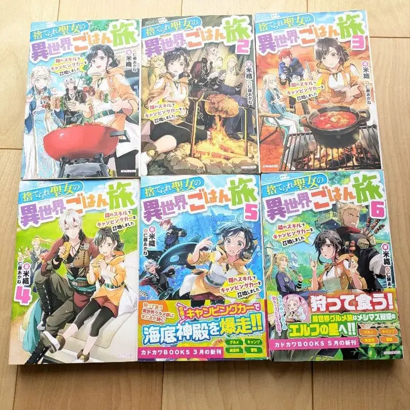 카도카와 BOOKS의 인기 시리즈 [ 버려진 성녀의 이세계 밥 여행 ~숨겨진 스킬로 캠핑카를 소환했습니다~ ]의 기권 전권 (1~6권) 세트입니다.