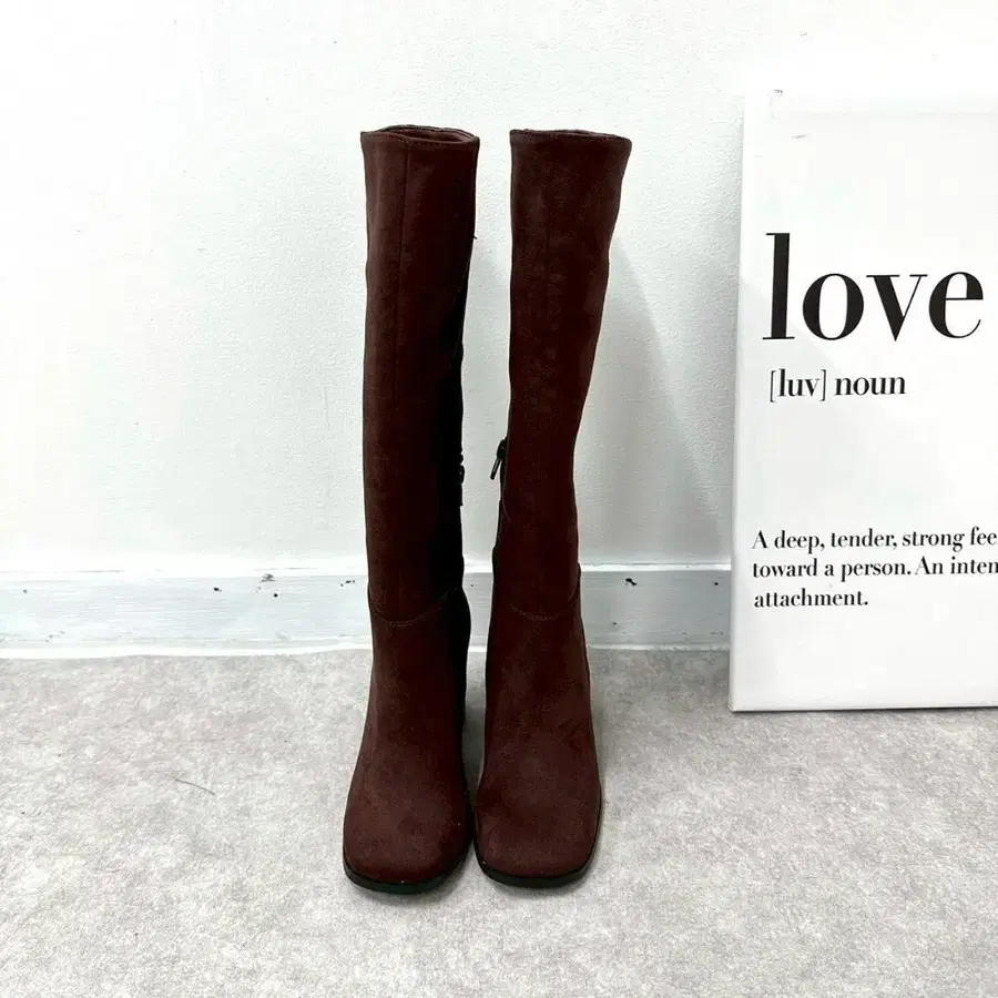 미사용 새상품 롱 부츠 스웨이드 브라운 사이드 지퍼 부착 S
