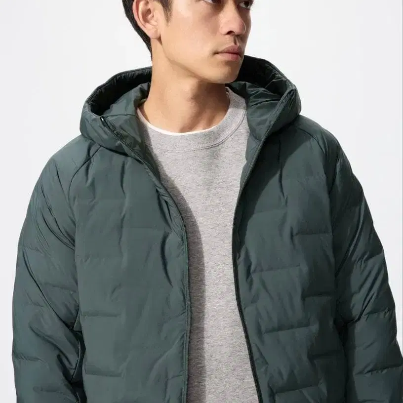 • 유니클로 퍼프 테크 후드티 다크 그레이