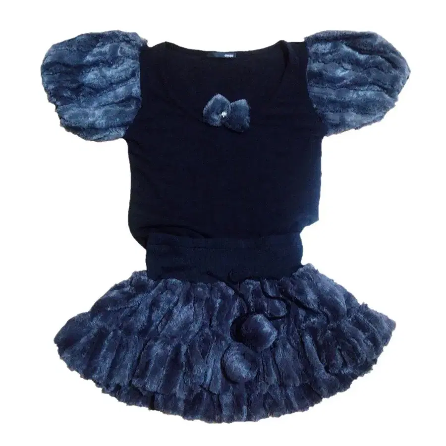 onespo 블랙 퍼 니트 반팔 상의 F 숏팬츠 스커트 M