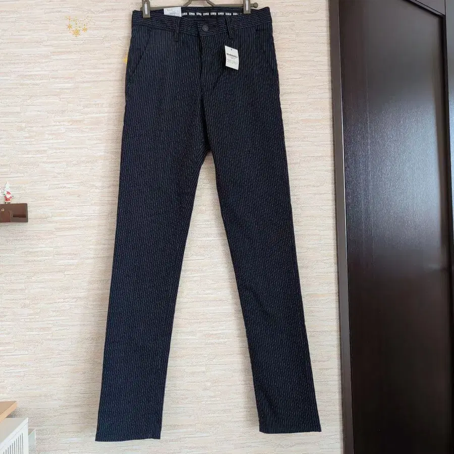 새상품 EDWIN 스트라이프 패턴 데님 슬림 테이퍼트 27인치