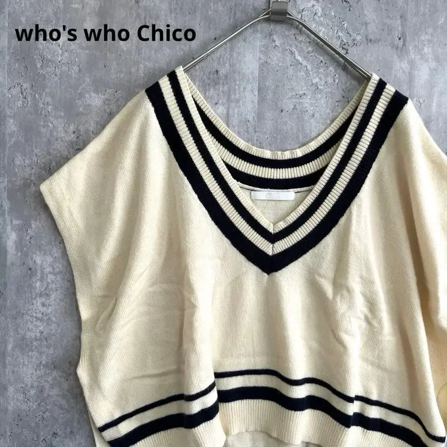 who's who Chico 브이넥 칼리지 니트 베스트 루즈핏