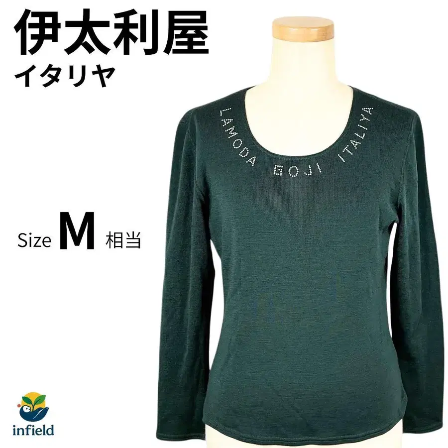 이타리야/이탈리아/니트/여성용/긴팔/비즈 장식/상의/깔끔함/어른스러움/그린/울/가을/겨울/고급스러움/평소 착용/외출/구제 의류/한정판