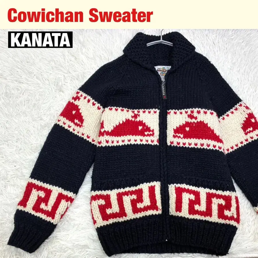 [ KANATA ] 카우친 니트 스웨터 고래 집업 네이비