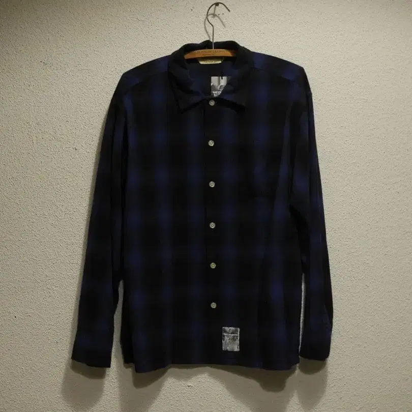 SOFTMACHINE 옴브레 체크 긴팔 셔츠 XL 네이비 체크