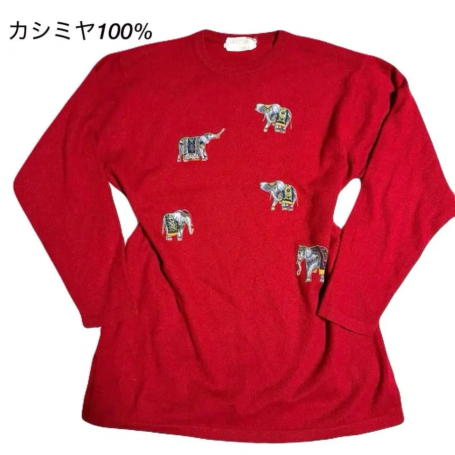 캐시미어 100% 실크 빅 사이즈 니트 스웨터 긴팔 레드 빨간색