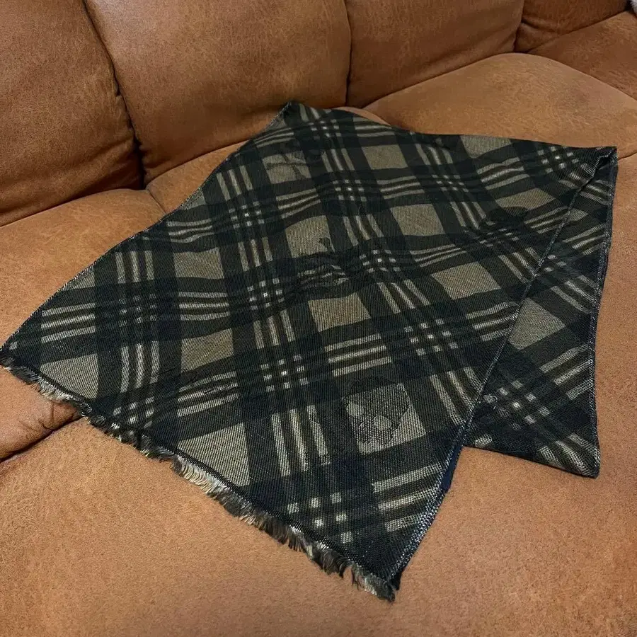 HYDROGEN 체크 무늬 스컬 머플러 블랙&그레이