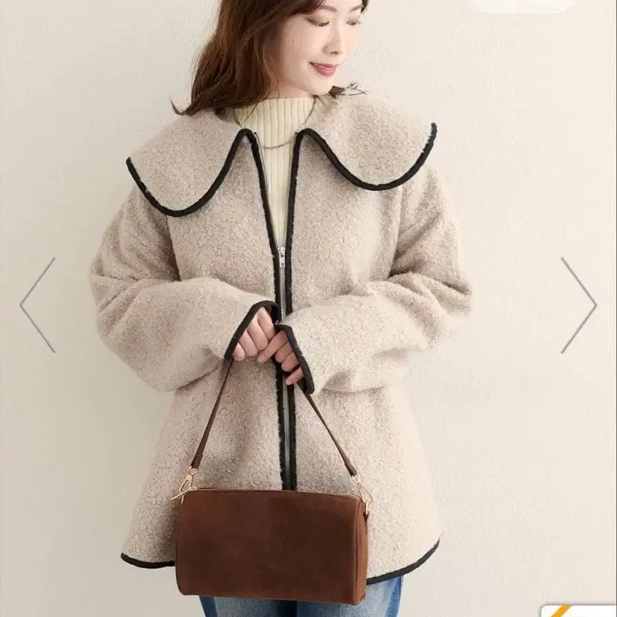 내추럴 꾸뛰르 베이지 보아풍 무스탕 코트 큰 카라 부착